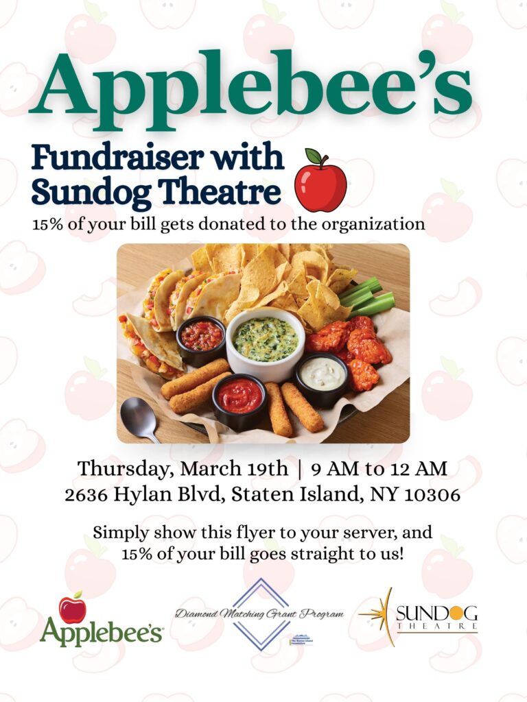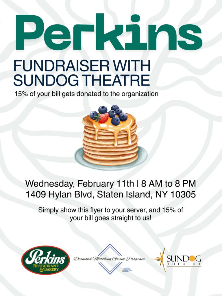 Support Sundog Theatre while enjoying a meal! Visit a participating Staten Island restaurant, show the flyer or say you’re there for Sundog,